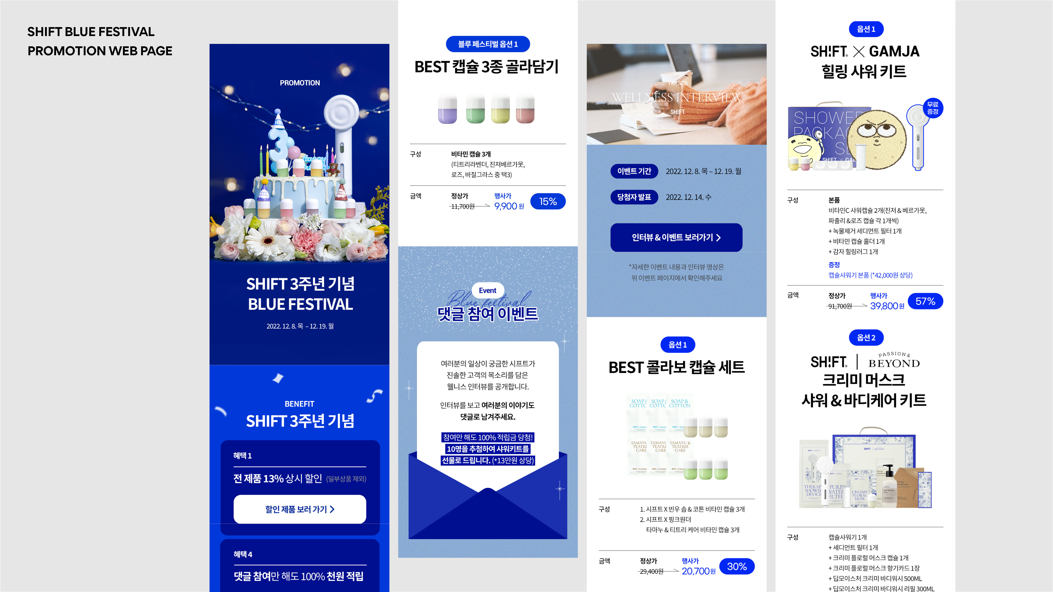 시프트 프로모션, 이벤트 상세페이지 및 웹배너, 썸네일 등을 제작했습니다.